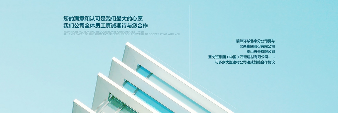北京市朝陽區金盞鄉科鷹科技園內,是北京******的建材營銷商之一,專業銷售各種高檔建筑材料的現代化公司.本公司已與多家大型建材廠家達成合作協議:泰山石膏建材有限公司,北新建材有限公司,濱州綠邦有限公司,河北金秋有限公司,北京金隅砂漿有限公司,歐文斯科寧(中國)投資有限公司,湯姆節能建材(北京)有限公司等.更與國外泰國工廠生產的:美巖板,清水板,木絲水泥板,木紋木絲板……簽訂了國內經營權;與德國高新企業超薄石材簽屬超薄巖板國內代理權(超薄巖板,可彎曲石材,厚度1.5~2mm左右)與臺灣合作研發礦石板(以最好的效果提現礦石的效果).好的工程絕對少不了一個好的建筑材料,瑞峰環球攜手各大品牌為您的工程保駕護航.